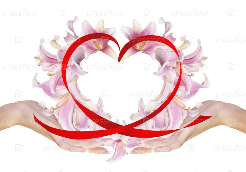 Сердце из красной ленты в руках