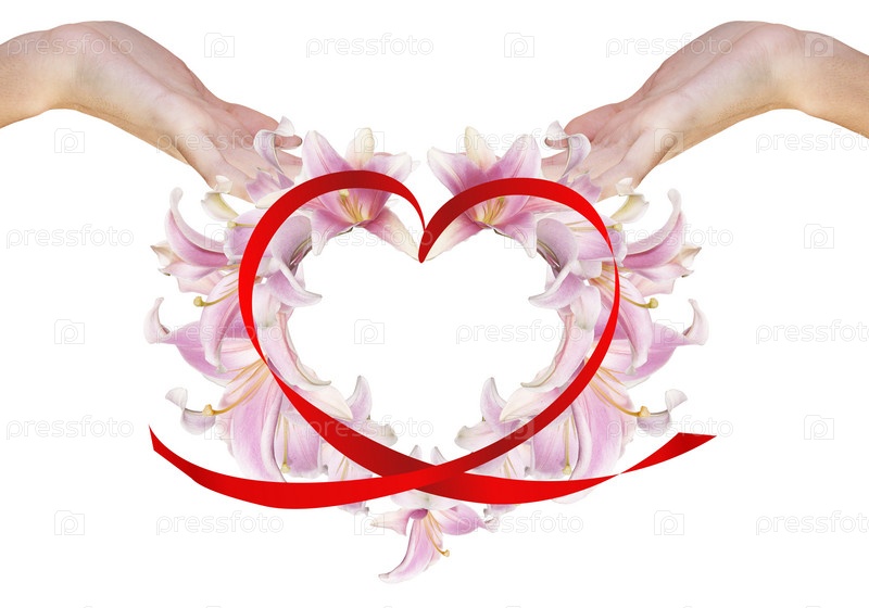 Сердце из красной ленты в руках