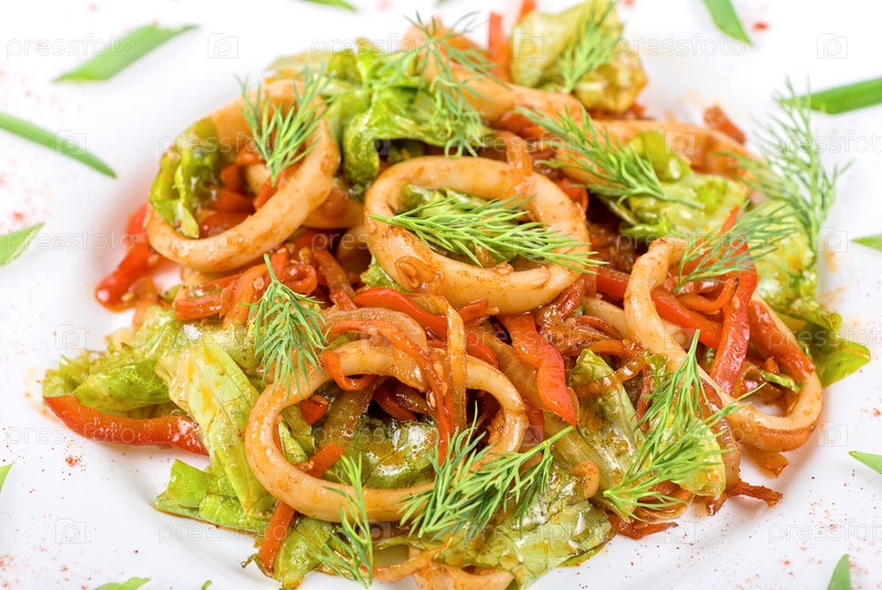 Салат с кальмарами и овощами