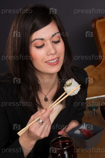 Бизнес-леди есть суши