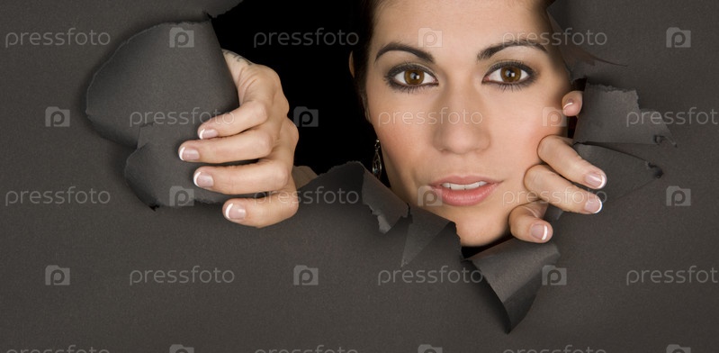 Девушка в прорези бумаги