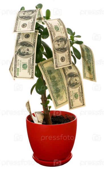 Доллары растут на денежном дереве, изолированном на белом фоне