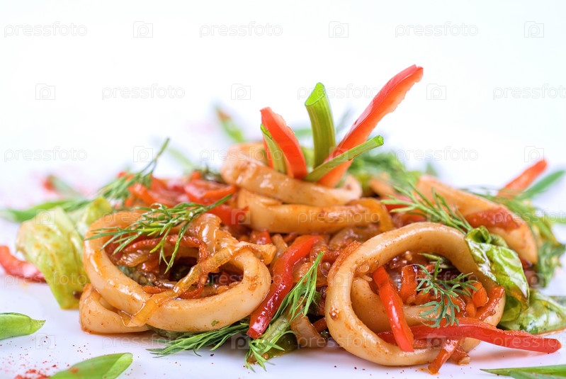 Салат с кальмарами и овощами