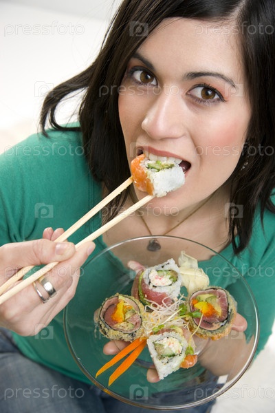 Девушка есть суши