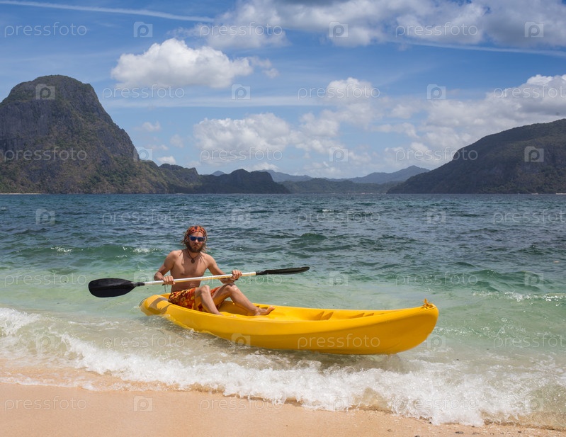 Молодые люди, гребля в каяк