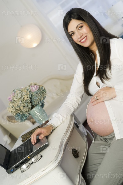 Красивая беременная женщина с ноутбуком