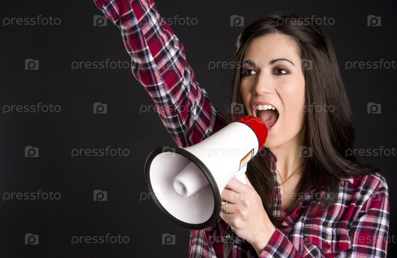 Женщина кричит в громкоговоритель