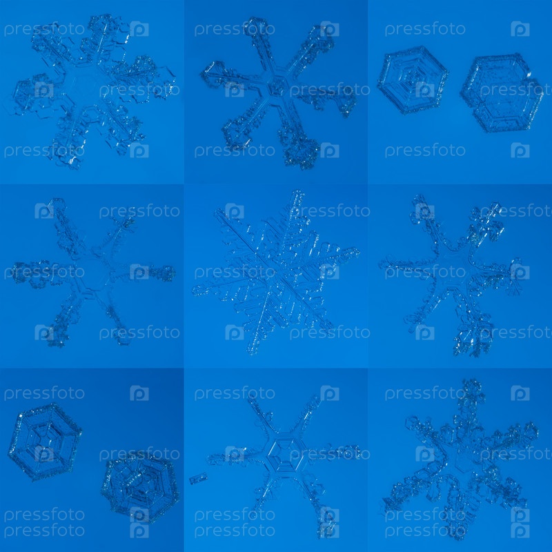 Набор снежинок через микроскоп