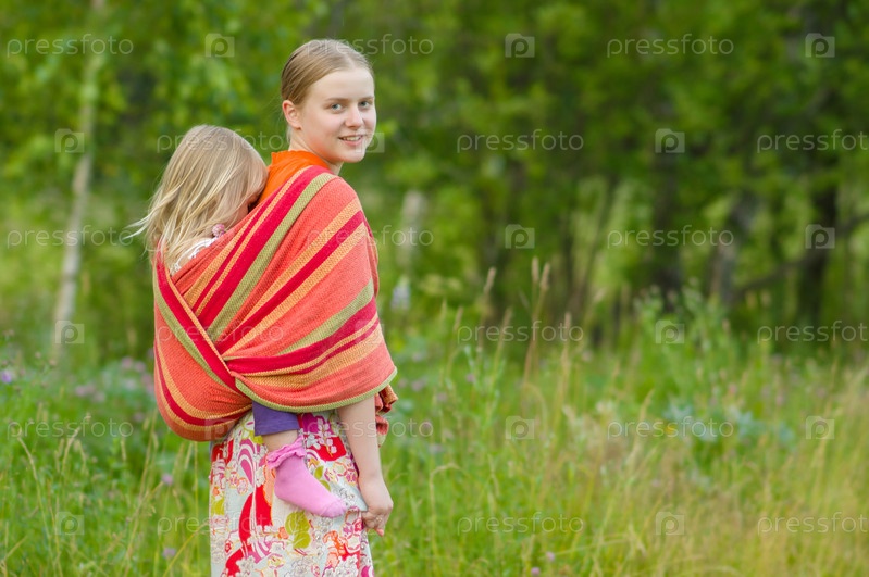 Молодая мать с дочерью в слинге