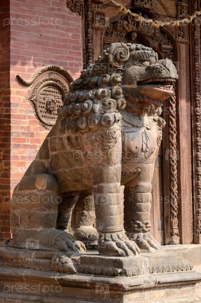 Статуя льва на Паттан площади Дурбар в Катманду, Непал, наследия ЮНЕСКО