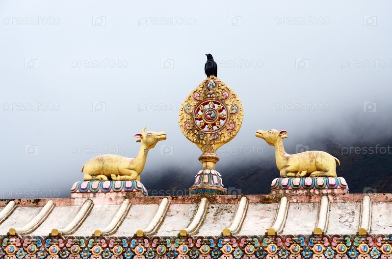 Священный символ буддизма - колесо Дхармы и двух оленей, Тенгбоче, Непал