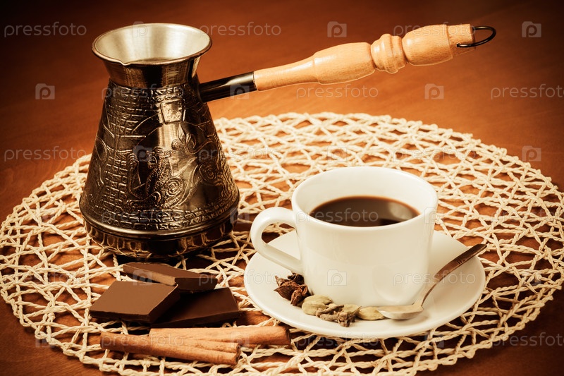 Чашка кофе с добавлением специй и кусочки шоколада