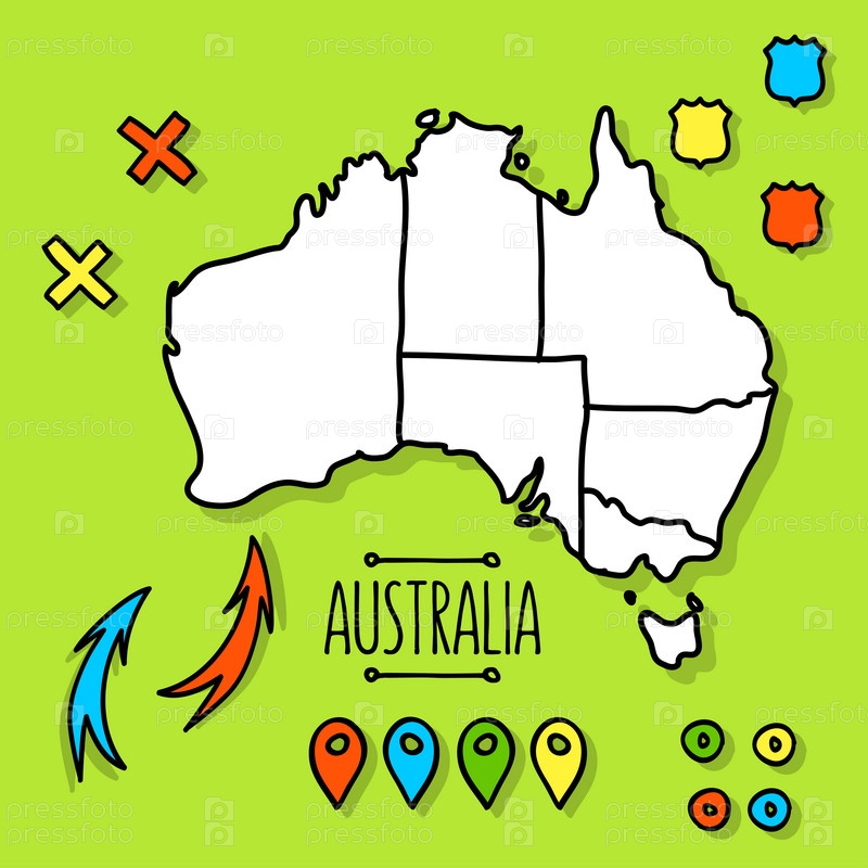 Австралия путешествия карта на зеленом фоне с булавки векторные иллюстрации