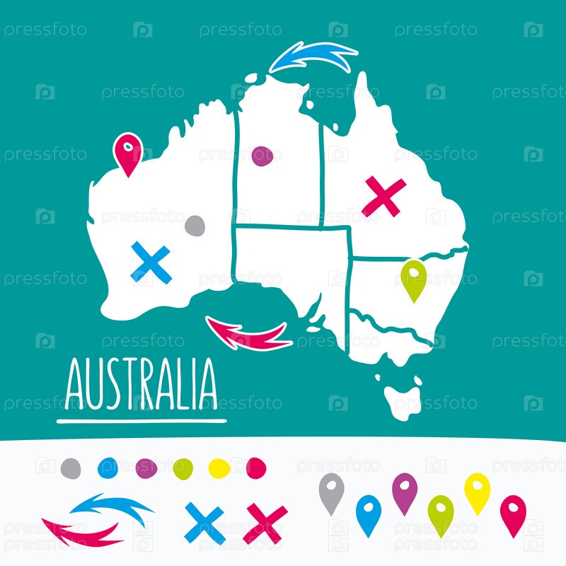Старинные рисованной Австралия путешествия карта с булавки векторные иллюстрации