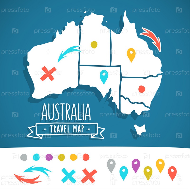 Рисованной Австралия путешествия карта с булавки векторные иллюстрации