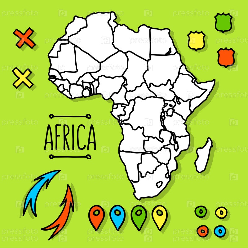 Рисованной Африка Карта путешествий с булавки векторные иллюстрации
