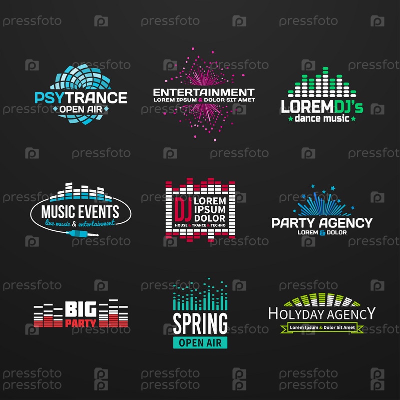 Третий большой набор музыки эквалайзер эмблема вектор на темном фоне