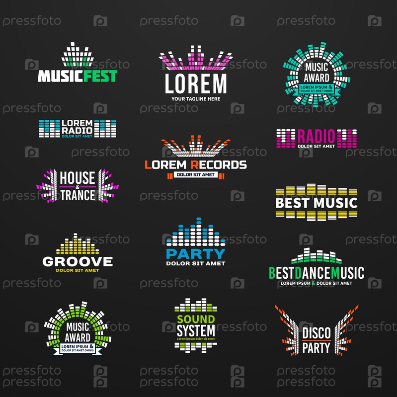 Первый большой набор музыки эквалайзер эмблема векторные элементы на темном фоне