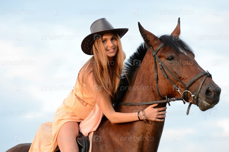 Женщина на коне против неба