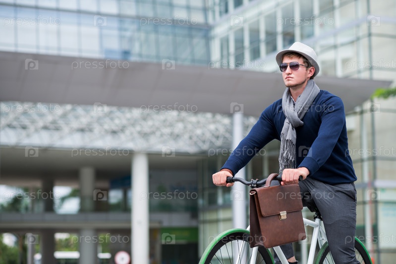 Стильный мужчина на велосипеде