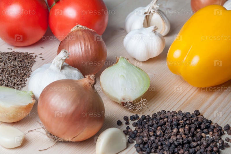 Свежие овощи и специи на разделочной доске