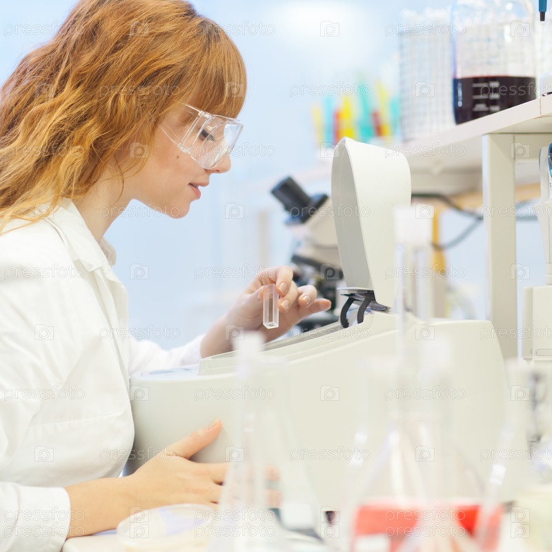 Молодой химик в лаборатории