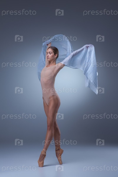 Красивые балерина танцует с Голубая вуаль