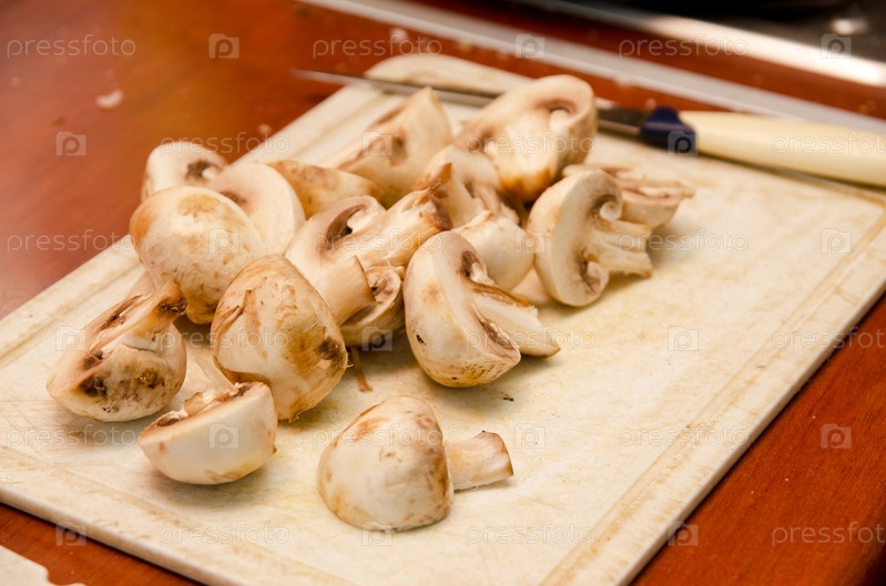 Шампиньоны на деревянной доске