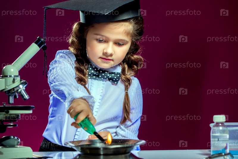 Маленькая девочка позирует в химической лаборатории