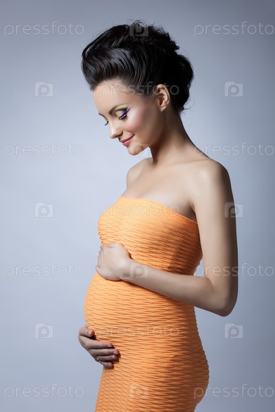 Красивые элегантные беременная женщина позирует в студии