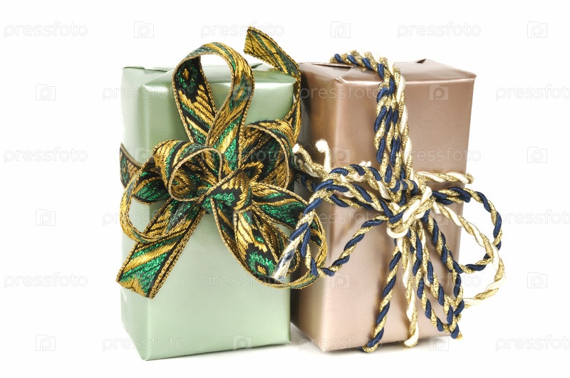 Две красивые рождественские подарочные коробки, изолированные на белом фоне