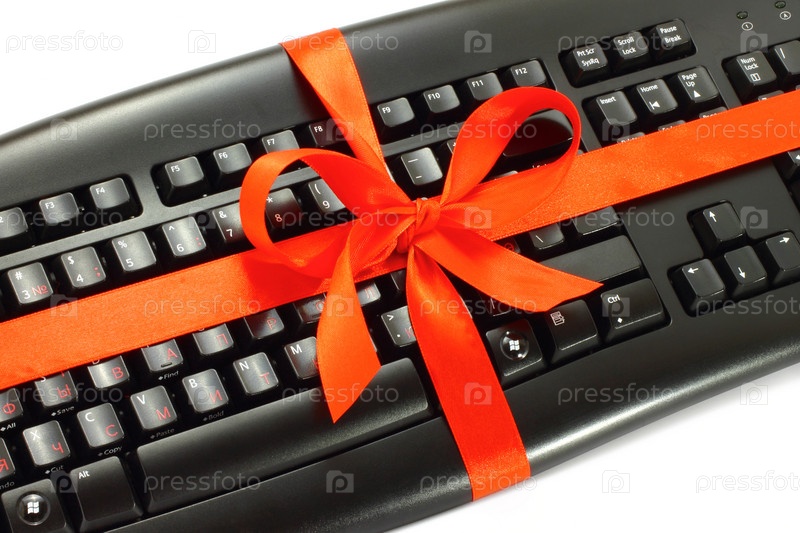 Клавиатура, перевязанная красным бантом