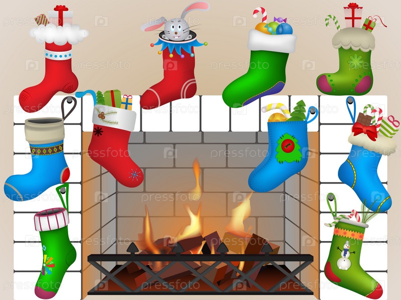 Рождественские носки у камина