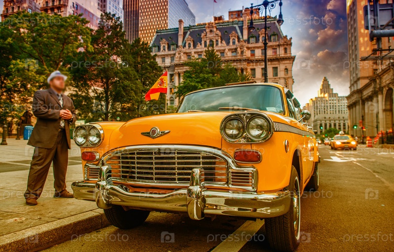 Винтажное желтое такси в Нью-Йорке