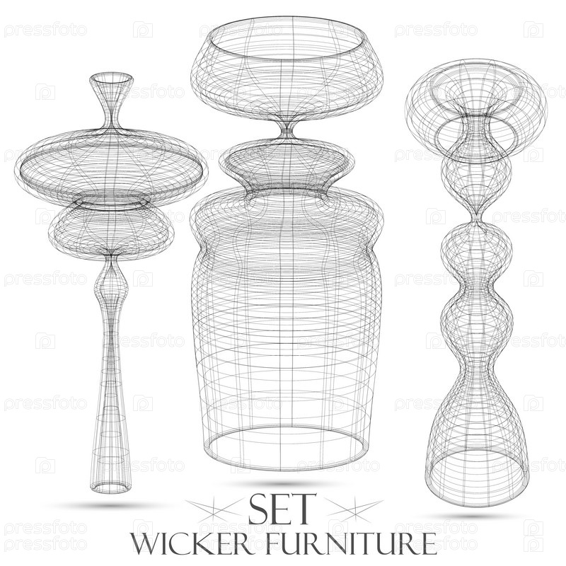 Набор плетеной мебели, каркасная модель, вектор