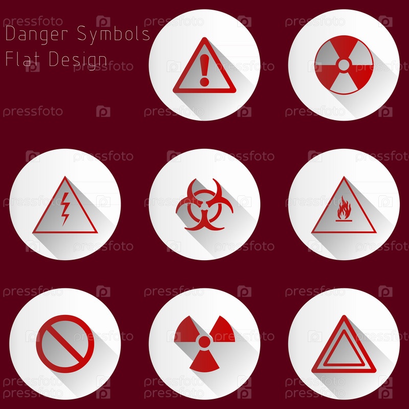 Символы опасности, набор иконок с длинными тенями изолированных вектор