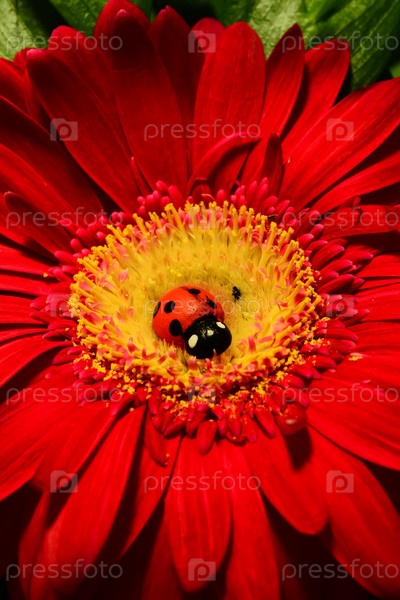 Божья коровка на красной гербере