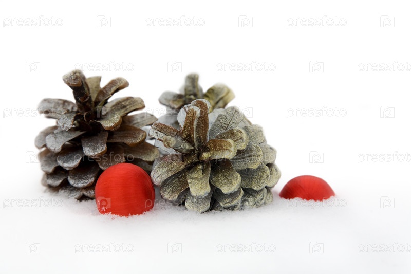 Еловые шишки на фоне снега