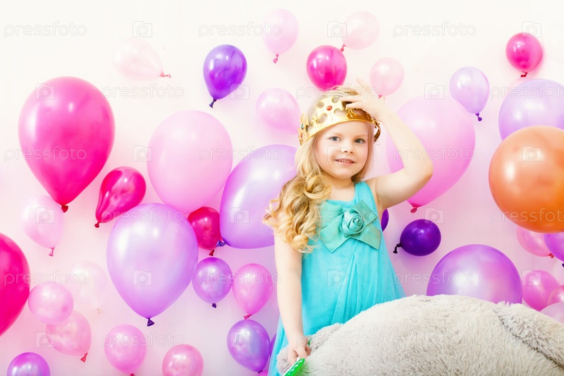 Изображение смазливое маленькая девочка пытается на корону игрушка
