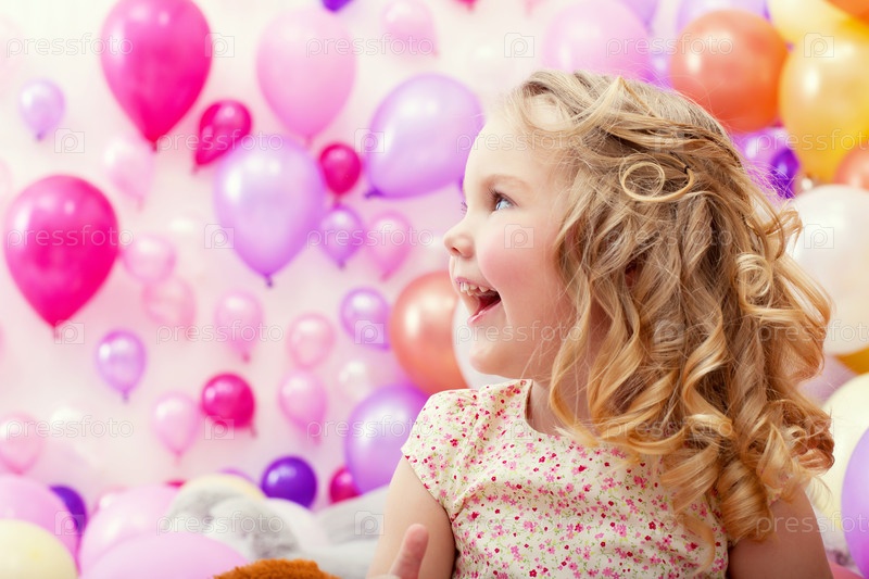 Очаровательны жизнерадостная девушка на фоне шары
