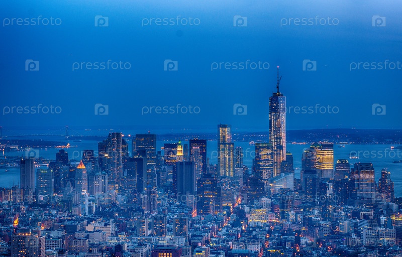 Прекрасный ночной вид на Нижний Манхэттен