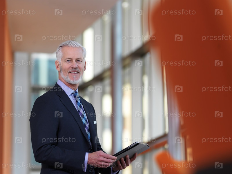 Старший бизнес человек работает на планшетном компьютере