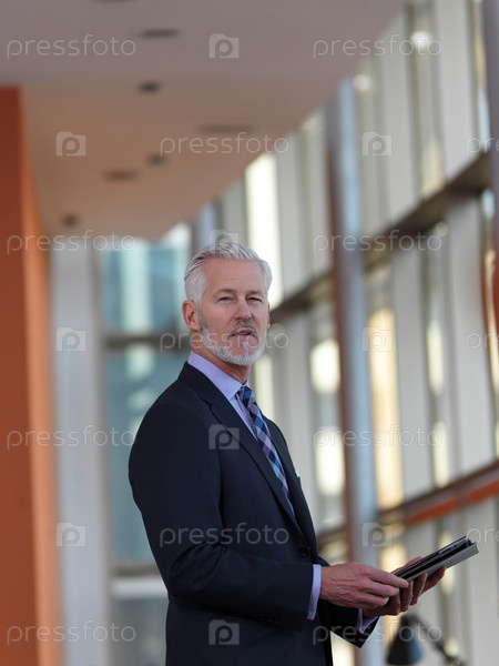 Старший бизнес человек работает на планшетном компьютере
