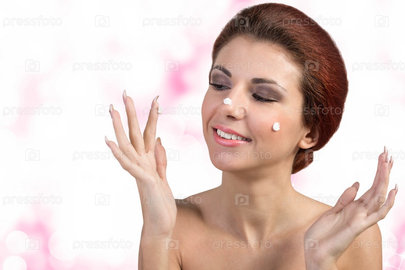 Красивая женщина с кремом на лице