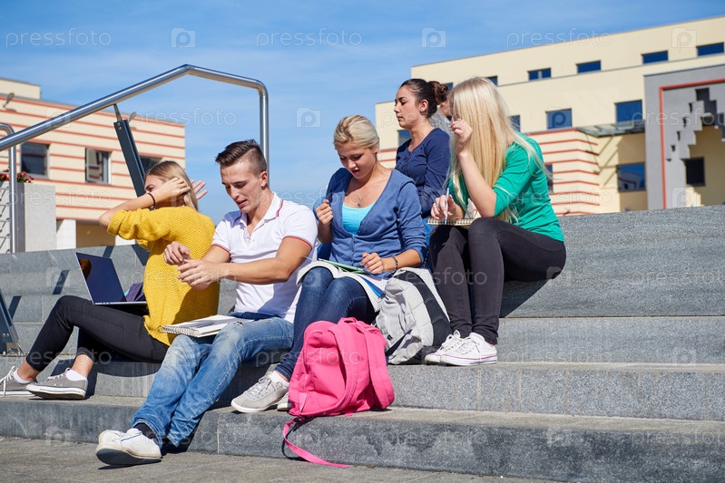 Студенты сидя на ступенях