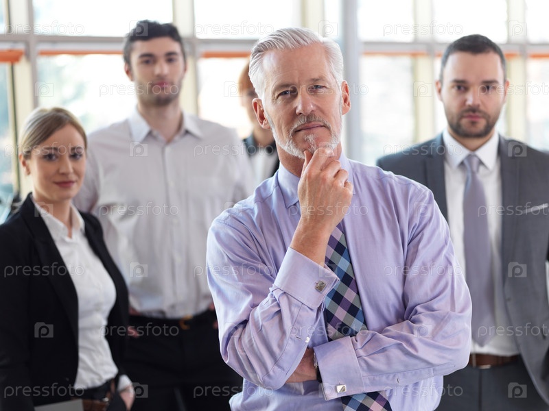 Старший бизнес человек с его командой в офисе