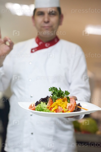 Шеф-повар отеля кухне готовит и украшения продуктов питания