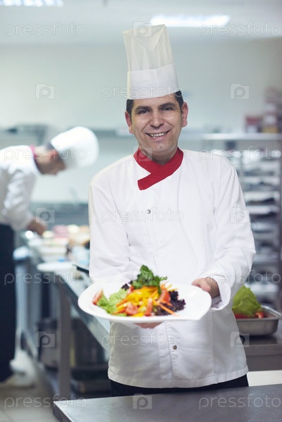 Шеф-повар отеля кухне готовит и украшения продуктов питания