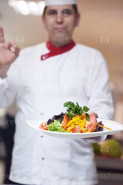 Шеф-повар отеля кухне готовит и украшения продуктов питания