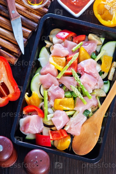 Сырое мясо с овощами
